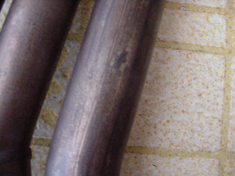 This is the one tiny spot it rubs..note the black area..It can really easily be taken care of with a ping hammer..or do it the "right" way and have the piping heated up and rebent about 1/16 of one inch downwards..either way, it has a KILLER v8 sound at idle..and the sound is just unbelieveable at WOT..only used around 1000 miles